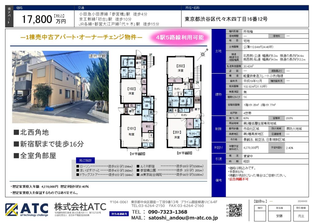 【一棟収益アパート】渋谷区代々木四丁目